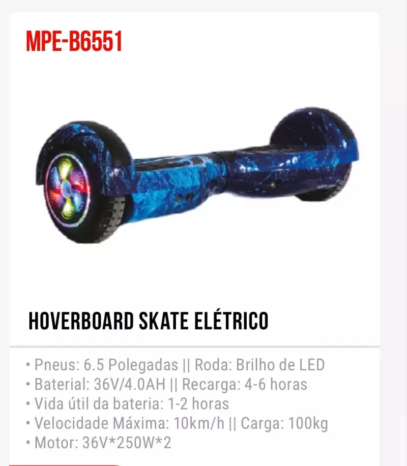 HOVERBOARD SKATE ELÉTRICO MPE-B6552
